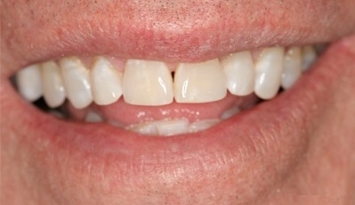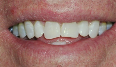 In some cases, a cosmetic dentist skillfully uses cosmetic bonding to fill in the sides of teeth. In the case to the right, edges of the teeth were evened and cosmetic bonding filled in the sides.